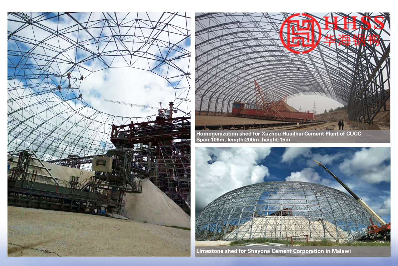 鋼網(wǎng)架結(jié)構(gòu)問世以來,以其高效的受力性能、新穎美觀的形式和快速方便的施工受到人們的歡迎。在需要大跨度、大空間的體育場(chǎng)館、會(huì)展中心、文化設(shè)施、交通樞紐乃至工業(yè)廠房,無不見到空間結(jié)構(gòu)的蹤影。可用作體育館、 影劇院、展覽廳、候車廳、體育場(chǎng)看臺(tái)雨篷、飛機(jī)庫(kù)、雙向大柱鋼網(wǎng)架結(jié)構(gòu)距車間等建筑的屋蓋。干煤棚、儲(chǔ)料棚、堆料廠、均料庫(kù)、輔料庫(kù)、熟料庫(kù)等工業(yè)廠房應(yīng)用。