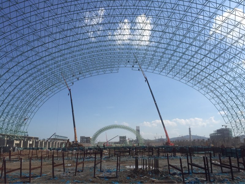 鋼結(jié)構(gòu)網(wǎng)架結(jié)構(gòu)是目前國內(nèi)大型體育場館、工業(yè)廠房、影劇院、侯車廳等建筑常用的屋蓋形式。這種新樣式結(jié)構(gòu)的方法是依賴鋼體自身的受力,用螺栓球把一根根鋼柱連接在一起相互交錯支撐,網(wǎng)結(jié)成各種形態(tài)不一的屋蓋空間。從小至幾米的會議室到大至跨度幾百米的工業(yè)廠房,這些都是空間網(wǎng)架結(jié)構(gòu)所適宜的范圍。