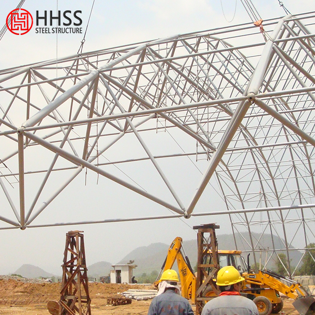 按實(shí)際用途:鋼結(jié)構(gòu)由多根桿件按照一定的網(wǎng)格形式通過(guò)節(jié)點(diǎn)連結(jié)而成的空間結(jié)構(gòu)。具有空間受力、重量輕、剛度大、抗震性能好等優(yōu)點(diǎn);可用作體育館、影劇院、展覽廳、候車廳、體育場(chǎng)看臺(tái)雨篷、飛機(jī)庫(kù)、雙向大柱網(wǎng)架結(jié)構(gòu)距車間等建筑的屋蓋。