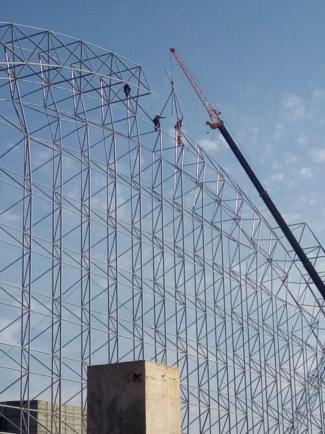 3. 根據(jù)對立體式小拼模塊斜腹桿的適當(dāng)調(diào)節(jié),使上弦的縱向與橫著桿件與電焊焊接球恰當(dāng)?shù)轿?。對斜腹桿的調(diào)節(jié)方式是,既能夠激光切割太長桿件,還可以用倒鏈打開橫桿的視角,使桿件恰當(dāng)?shù)轿?。確保上弦網(wǎng)格的恰當(dāng)規(guī)格。