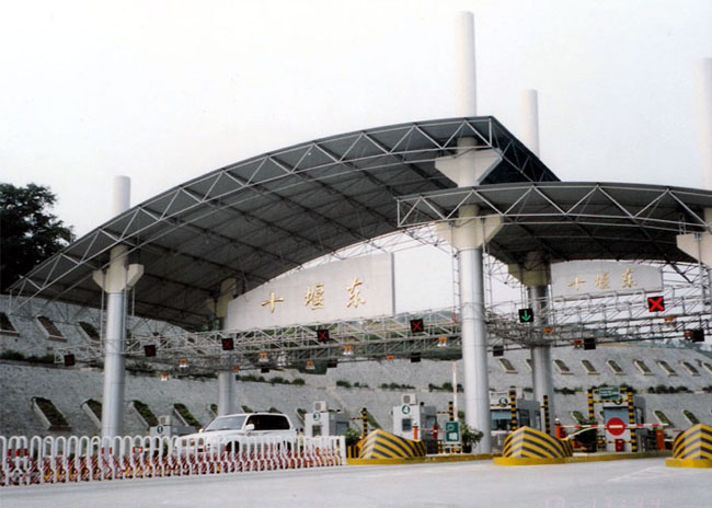 某高速公路收費(fèi)站采用網(wǎng)架與鋼管混凝土柱組合的混合結(jié)構(gòu),其特點(diǎn)是扭轉(zhuǎn)不規(guī)則,凹凸不規(guī)則,結(jié)構(gòu)體系較復(fù)雜.網(wǎng)架的整個設(shè)計(jì)過程,節(jié)點(diǎn)構(gòu)造,屋面構(gòu)造和防腐處理。包括地基處理、結(jié)構(gòu)分析與選型等.研究了結(jié)構(gòu)的動力特性及抗震性能。